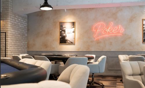 配信テーブル含む全9卓あり、大阪でもトップクラスの大規模店です。お客様がプレイしやすいように、卓間も広めに取っており、ゆったりおくつろぎ頂きながら、ポーカーを楽しんで頂ける環境です。